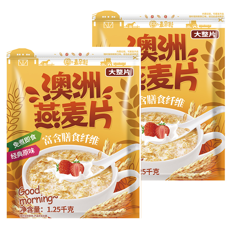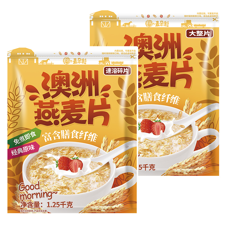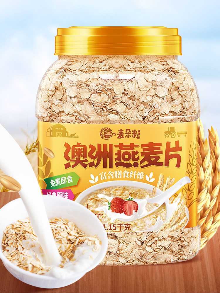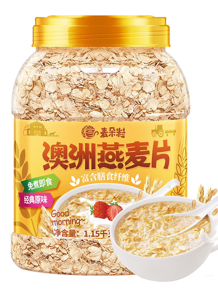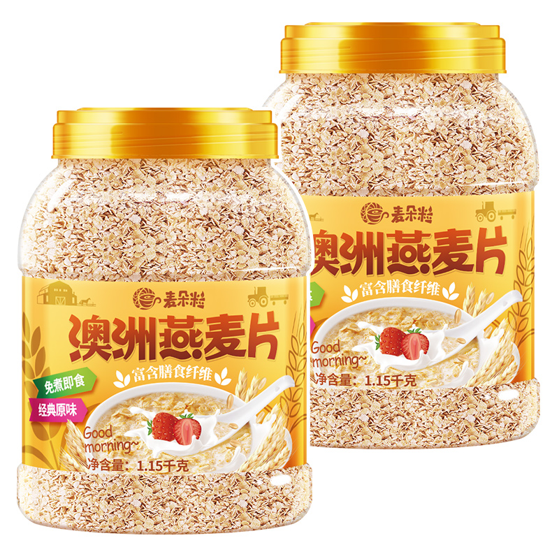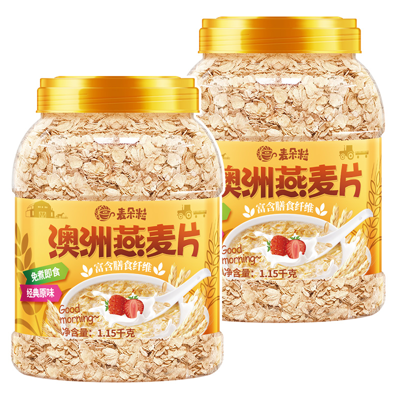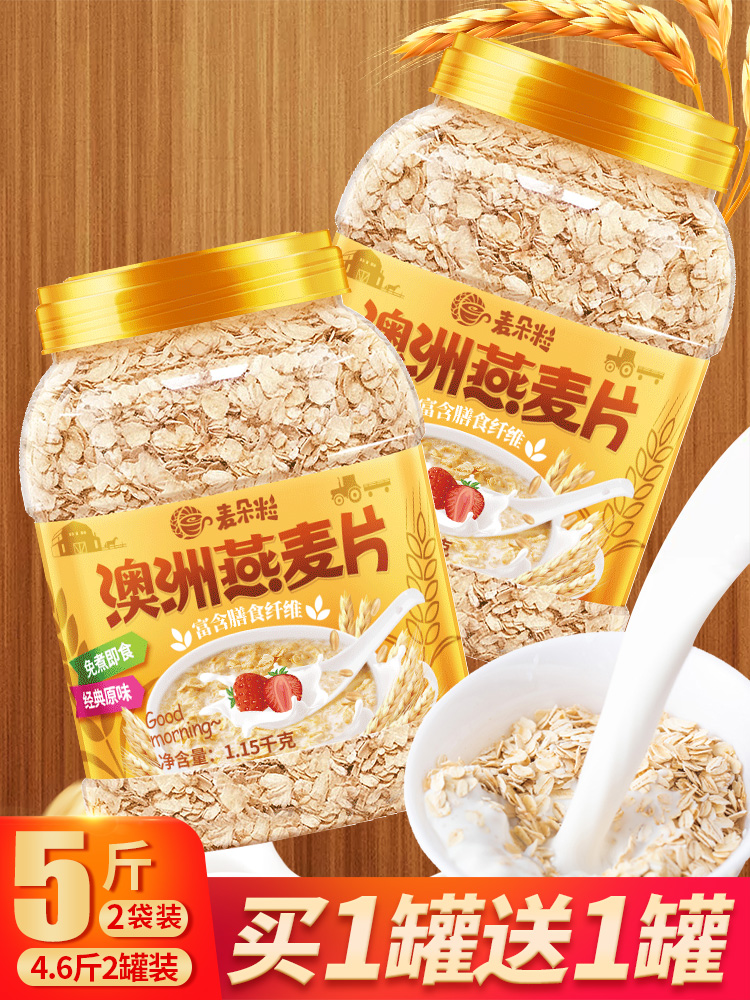 燕麦片5斤2罐即食无糖精麦片早餐冲饮泡未脱脂纯麦片健身代餐食品