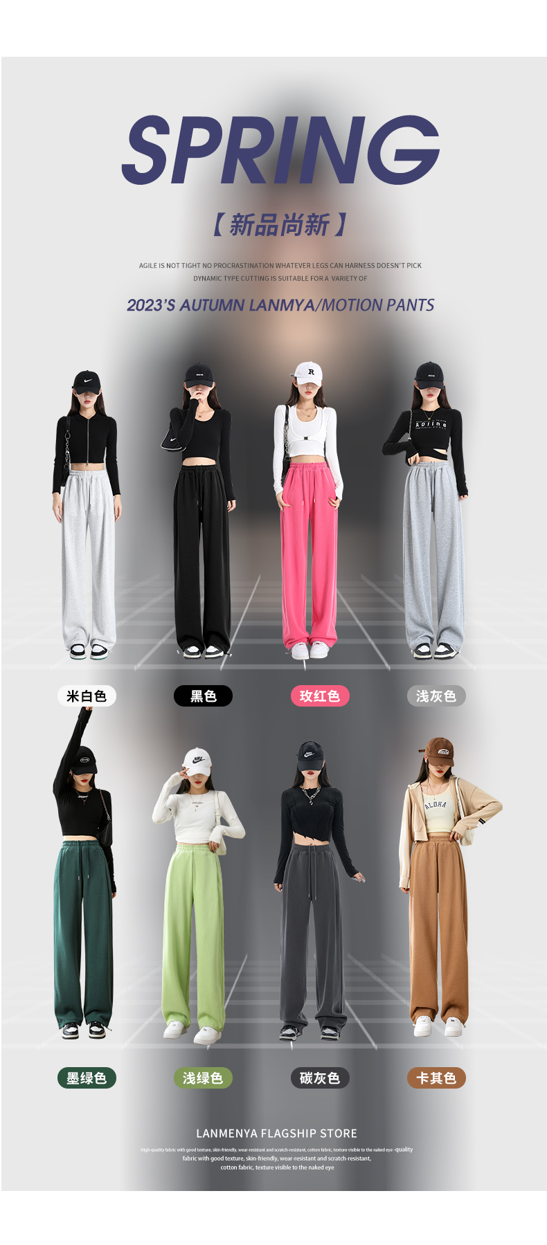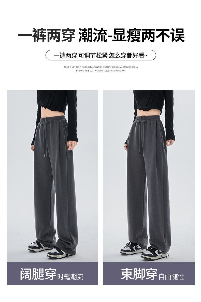 灰色运动裤女秋季宽松直筒束脚休闲美式卫裤小个子秋冬加绒阔腿裤