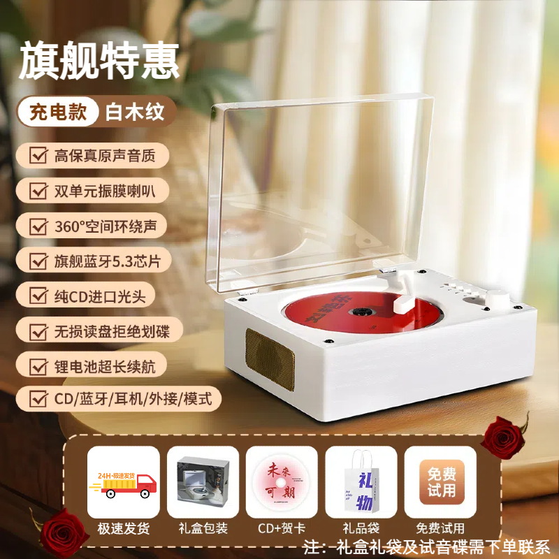 cd机复古听专辑光碟播放器无线蓝牙音箱光盘唱片机kpop生日送礼物