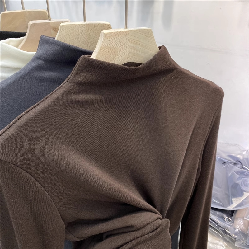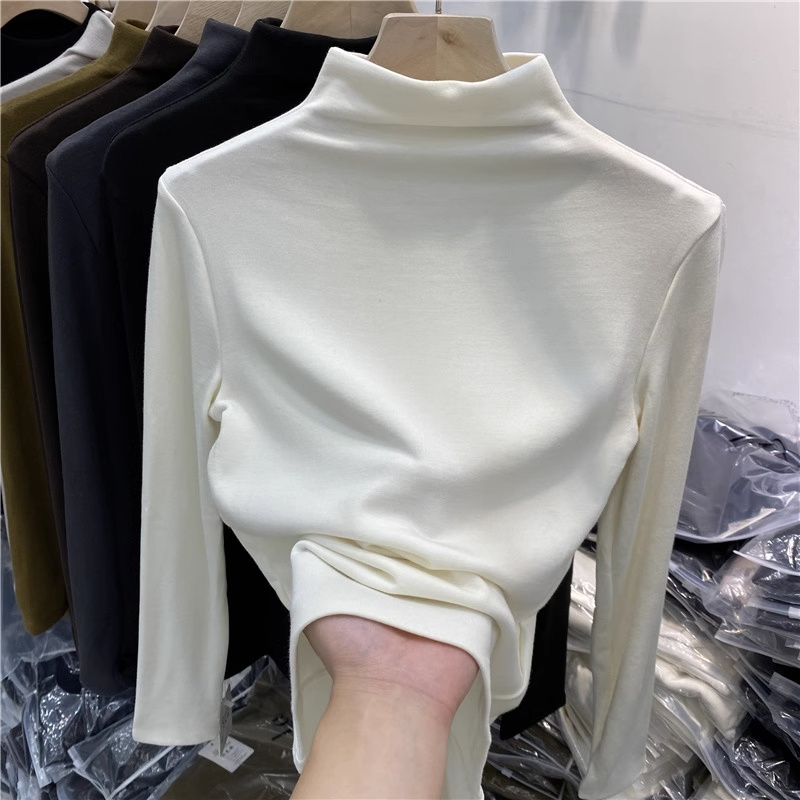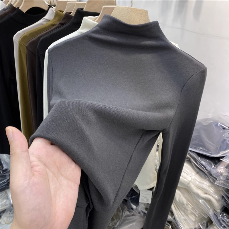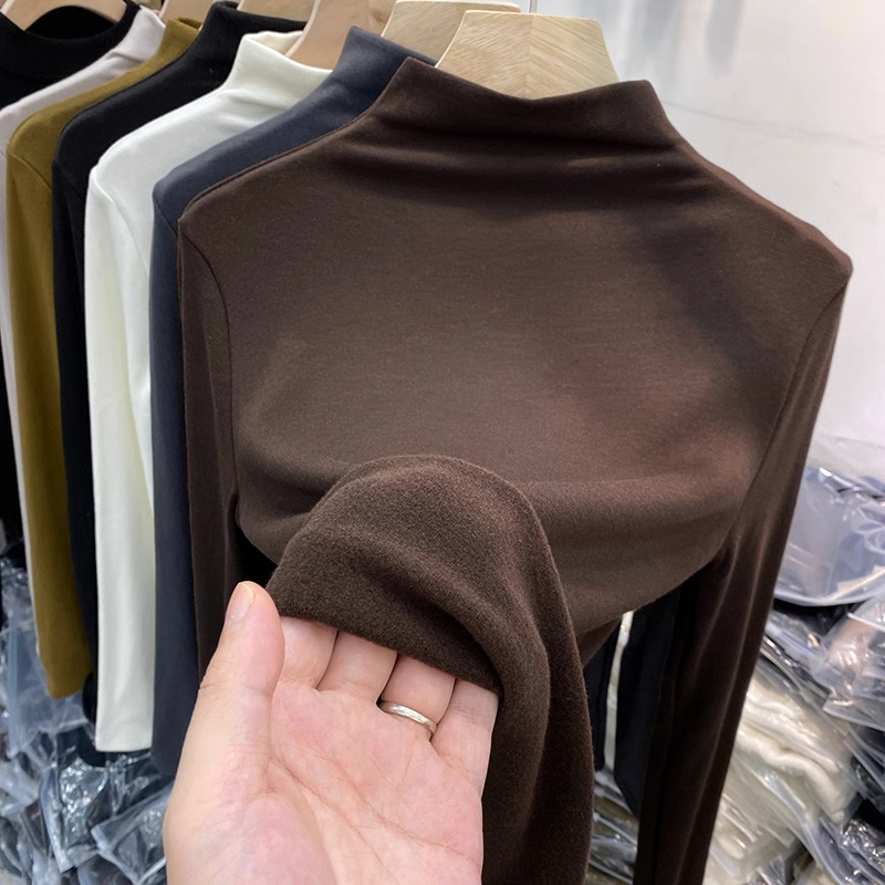 德绒半高领打底衫女2025新款秋冬长袖保暖加绒内搭磨毛加厚上衣女