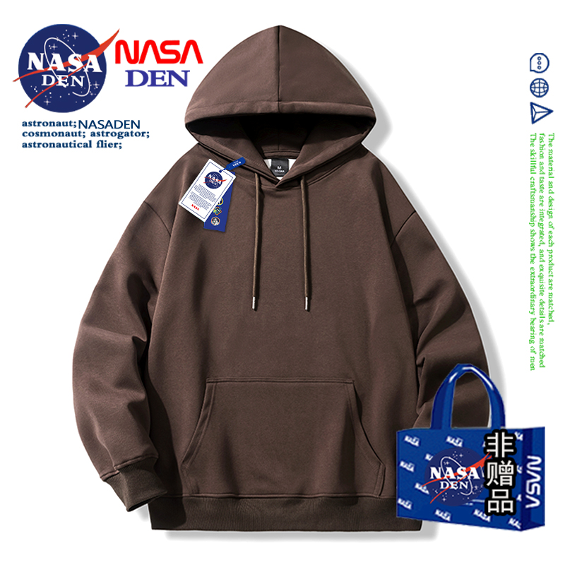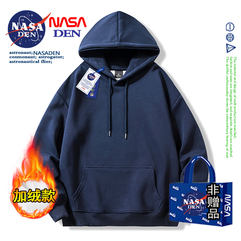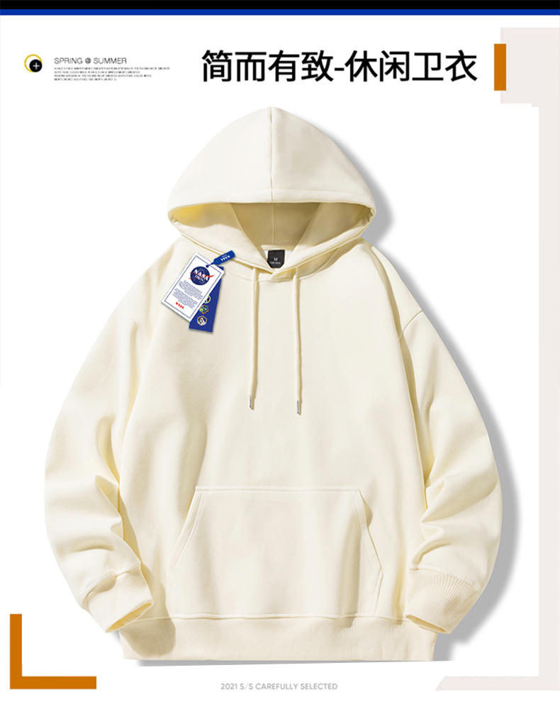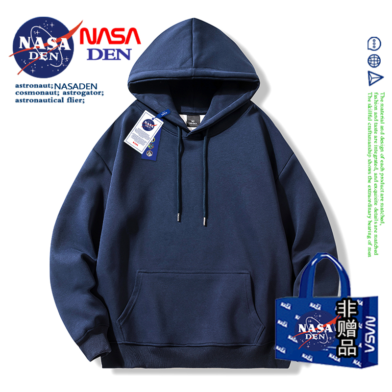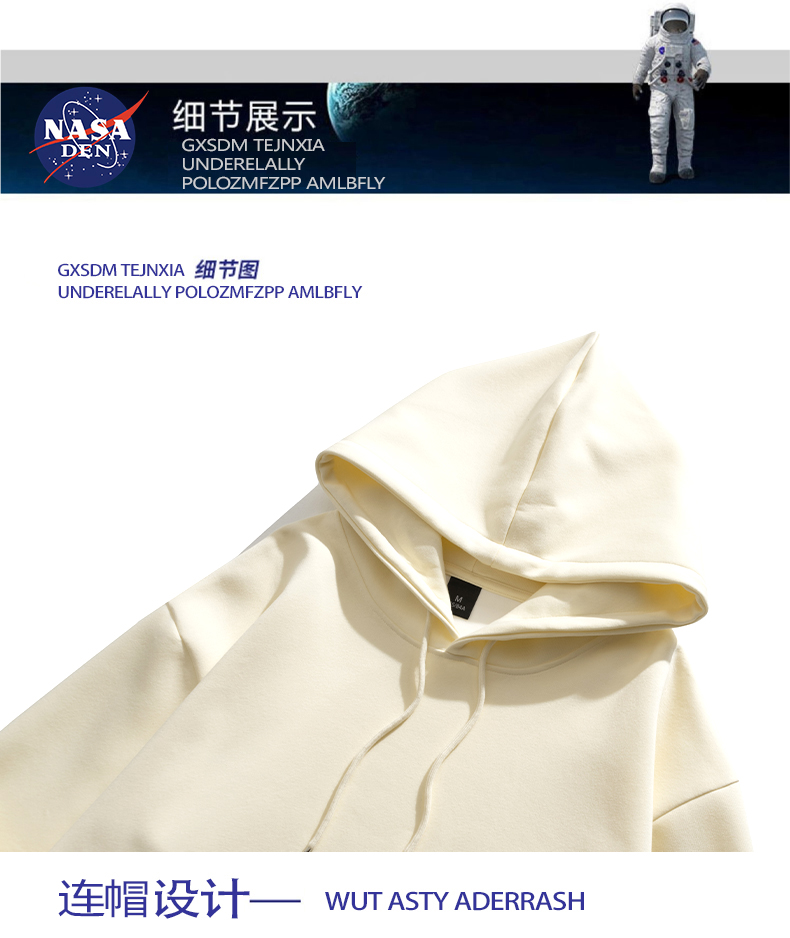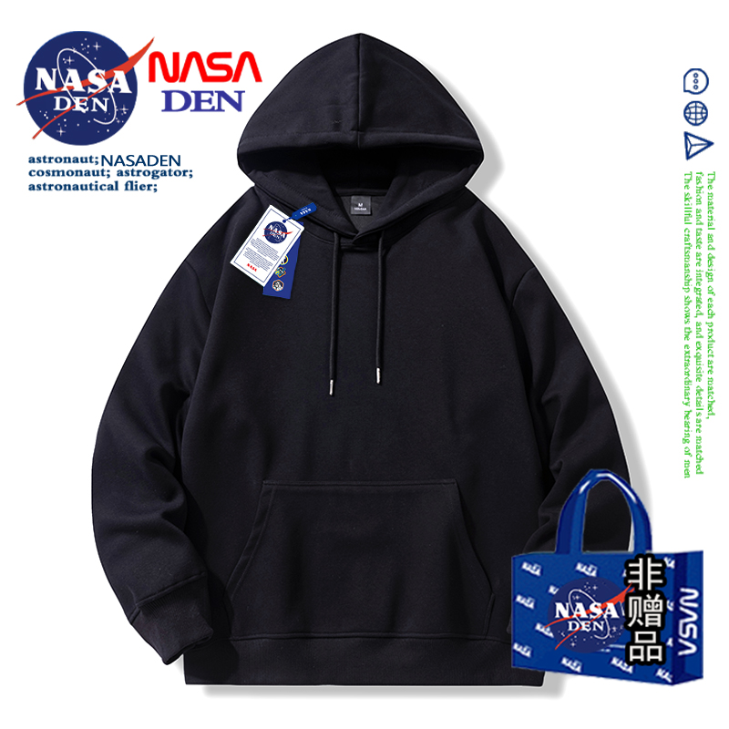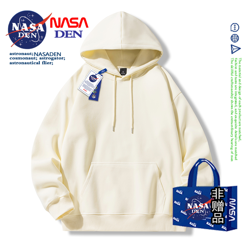 NASA联名白色卫衣男女款纯色连帽青春套头宽松流行青年外套上衣女