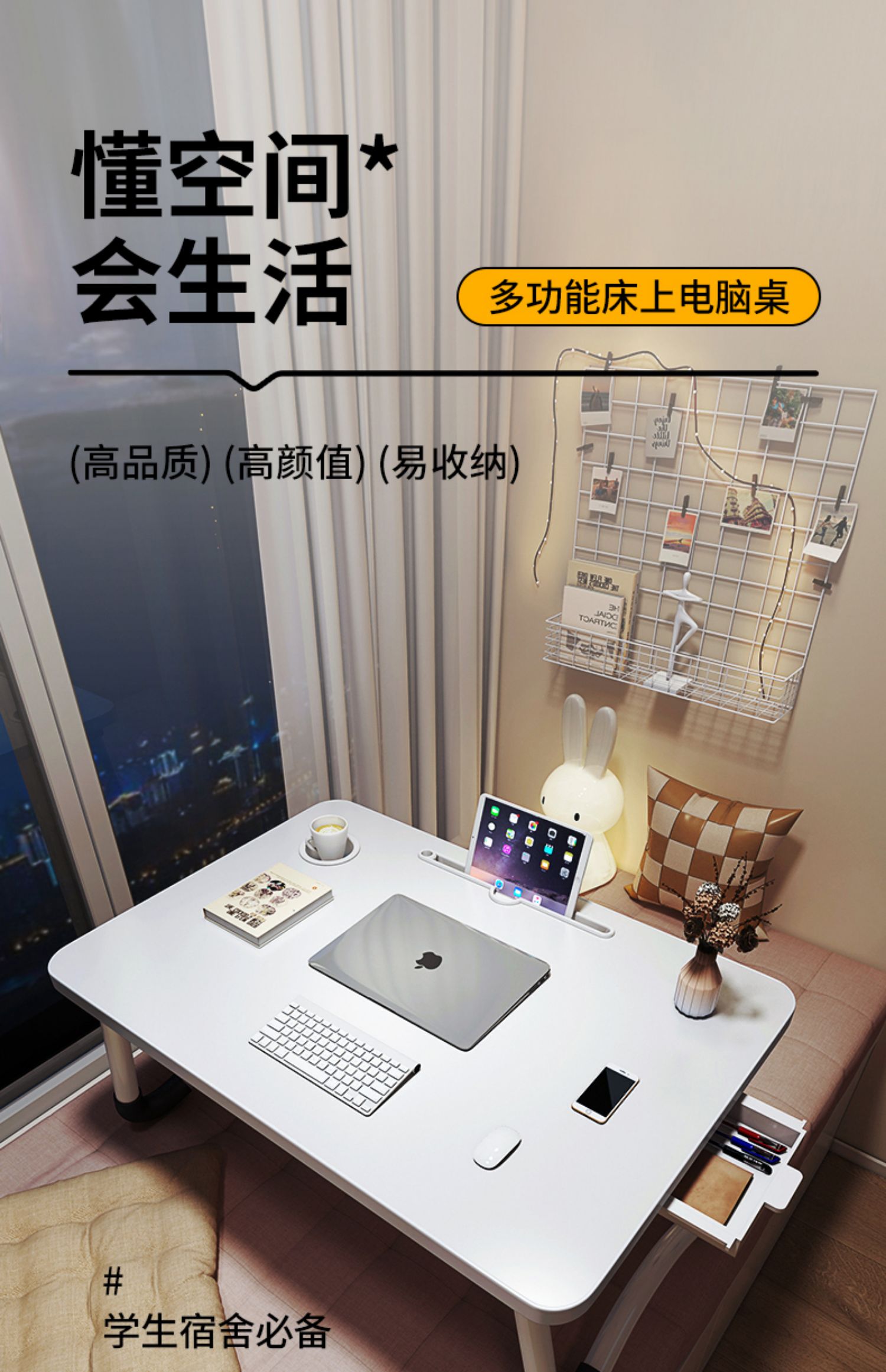 床上小桌子折叠电脑桌飘窗学习书桌家用卧室坐地笔记本懒人桌学生宿舍游戏桌写字小桌板多功能儿童学习桌炕桌