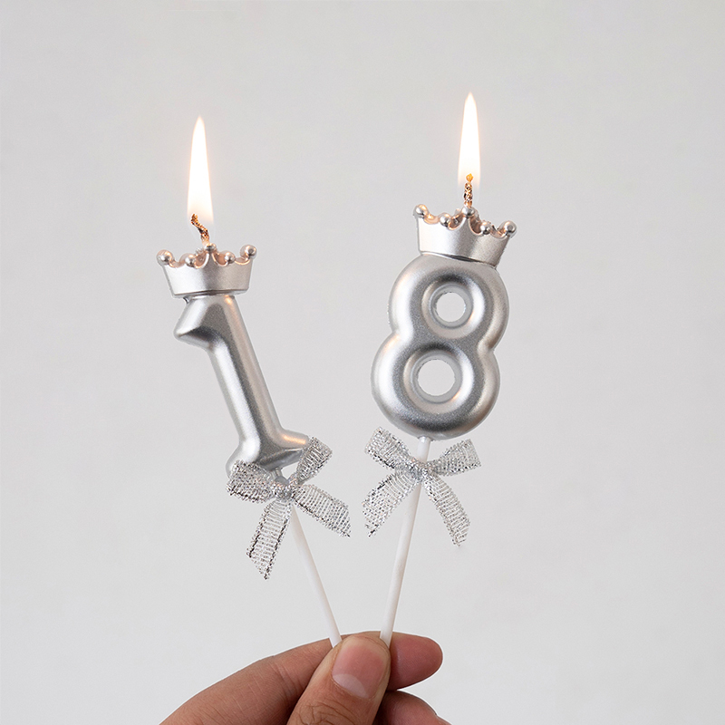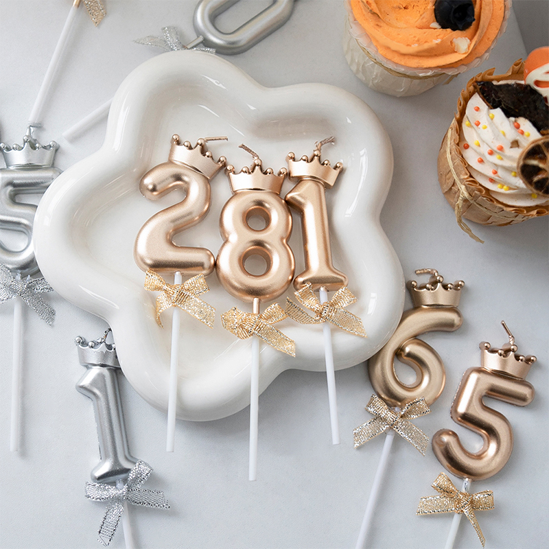 香槟金银色蝴蝶结数字蜡烛蛋糕插牌18岁30岁女神公主生日派对装扮