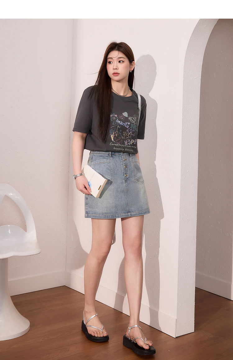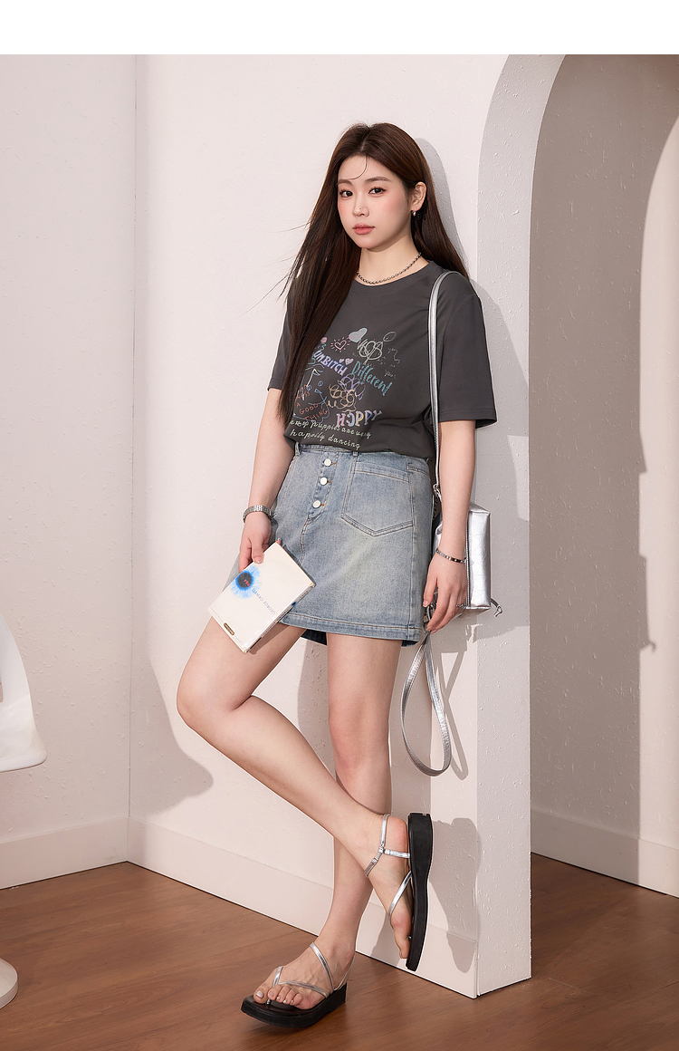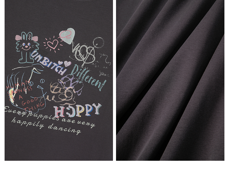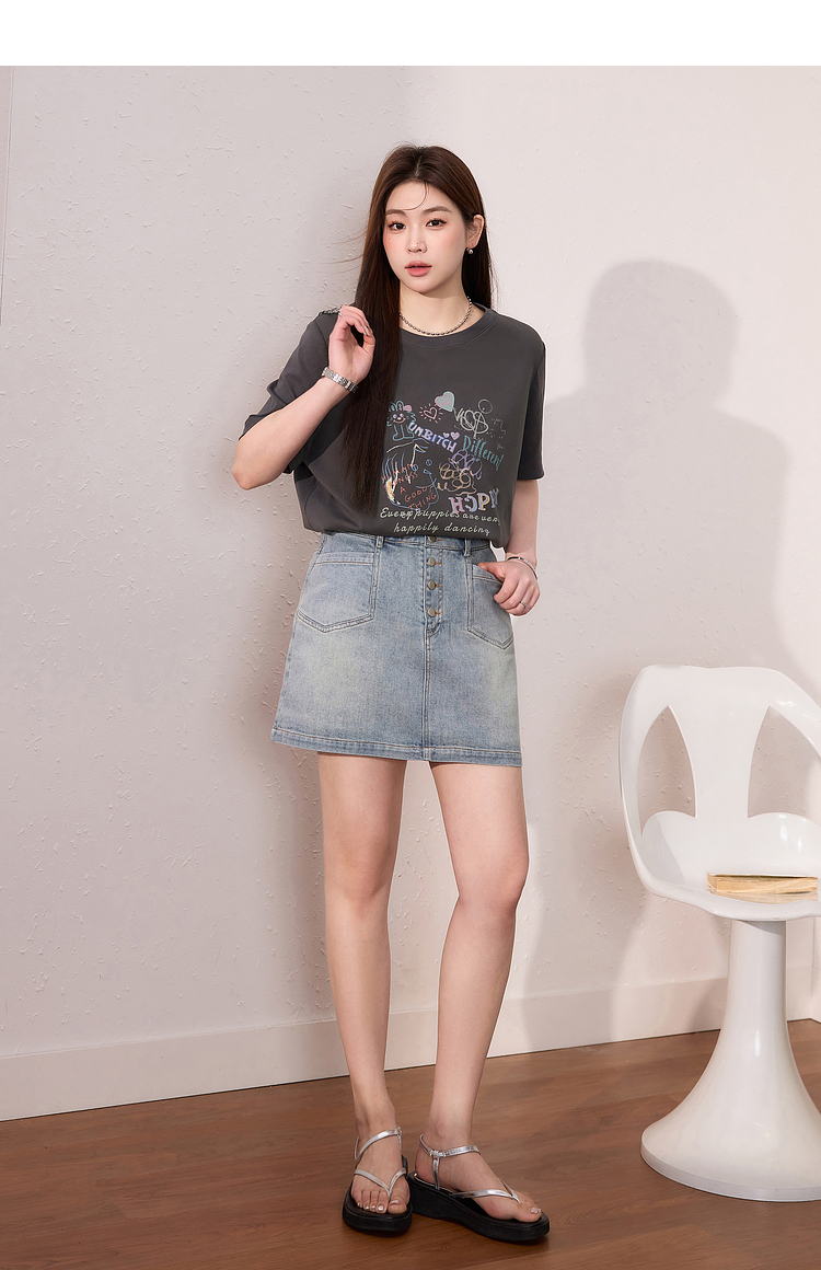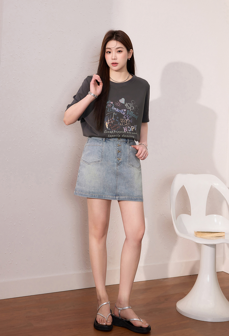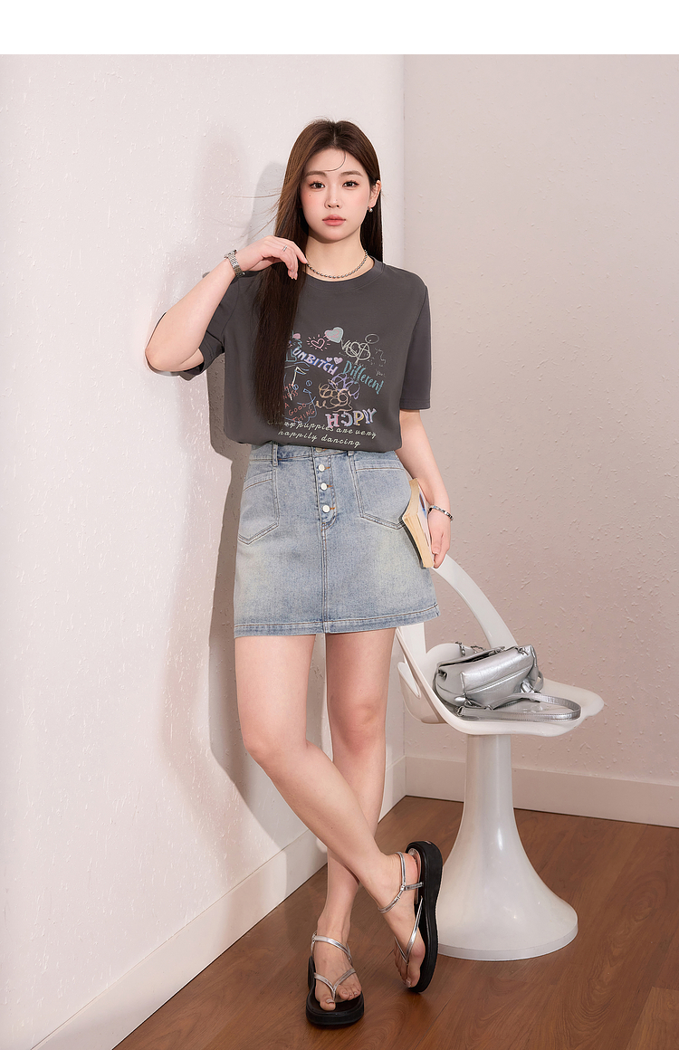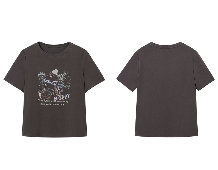 蓝语大码女装时尚涂鸦印花透气短袖T恤夏季宽松显瘦灰色百搭上衣