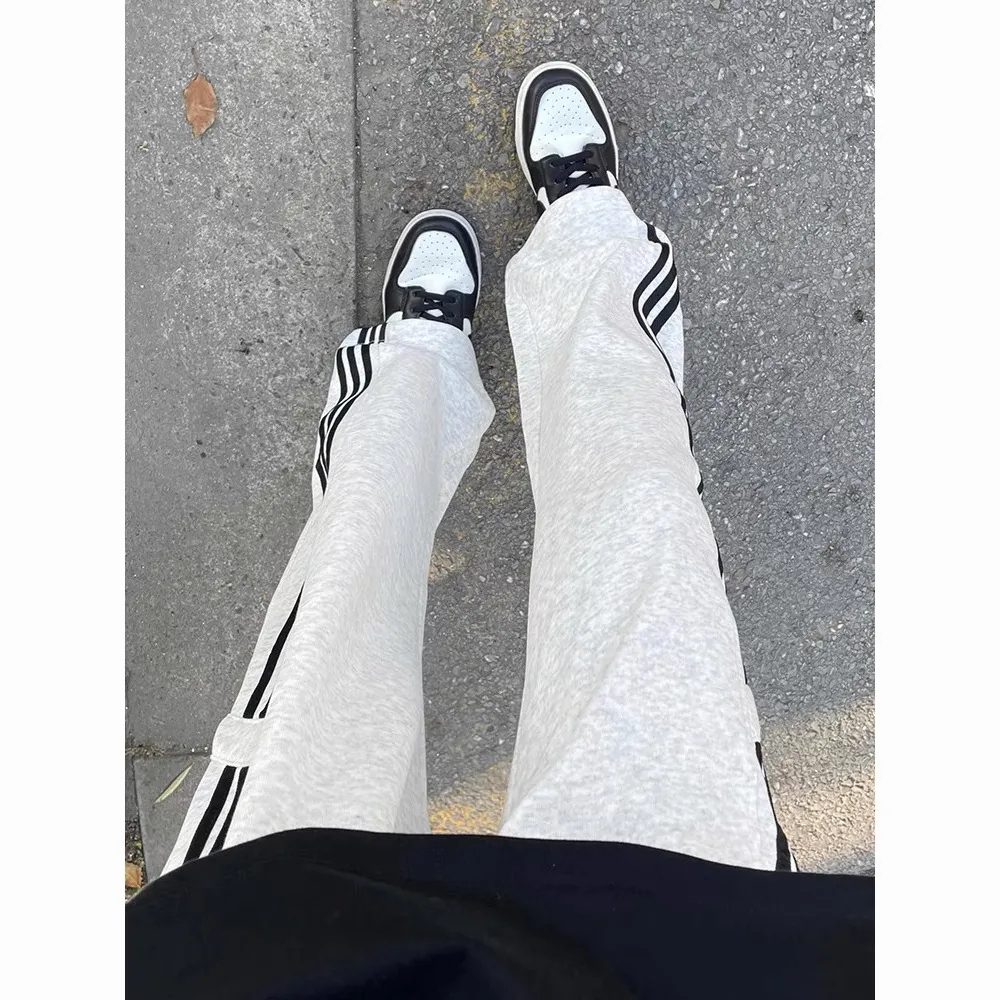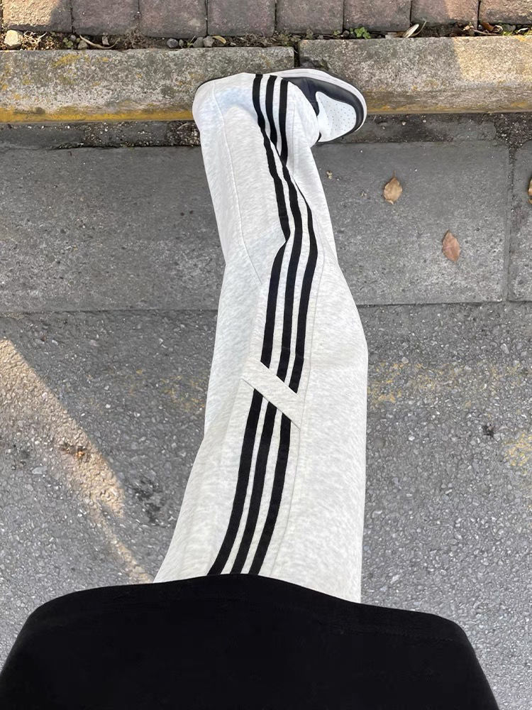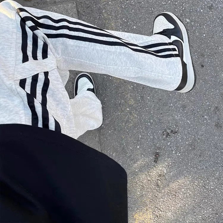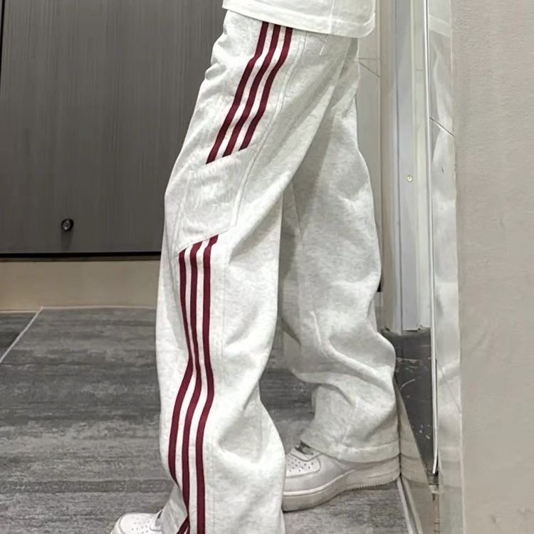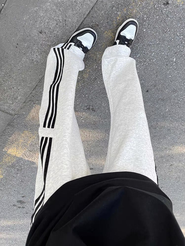 美式复古三条杠撞色休闲裤子美式复古新款宽松显瘦直筒运动裤夏季