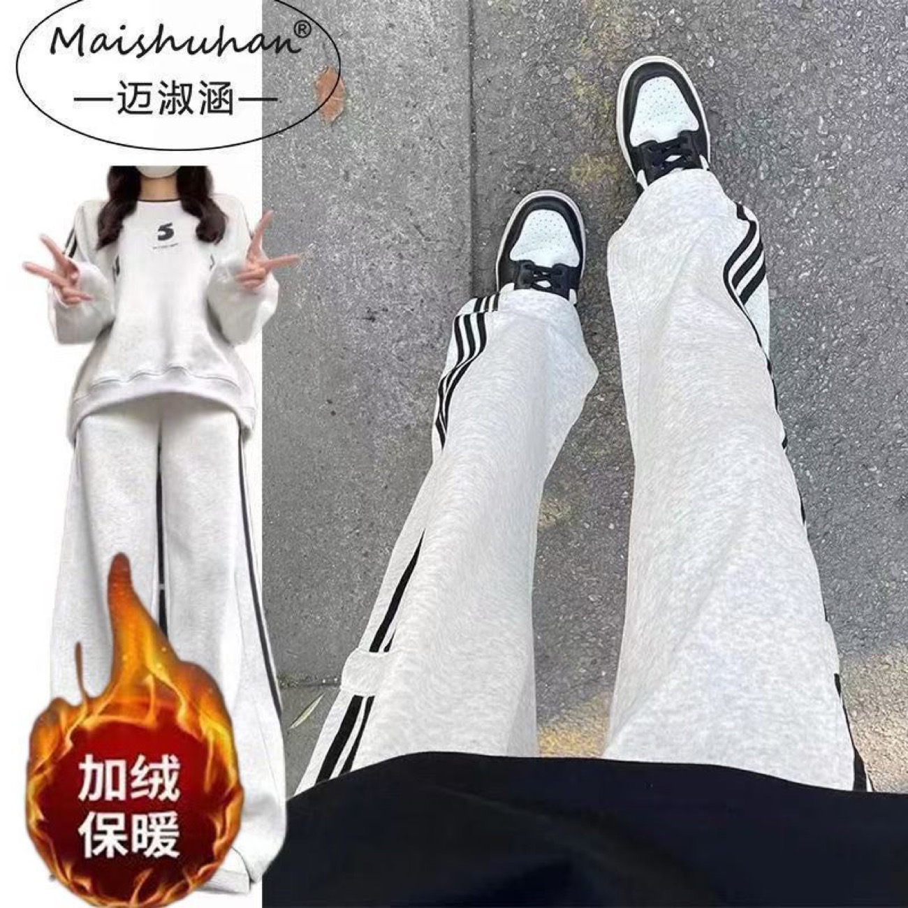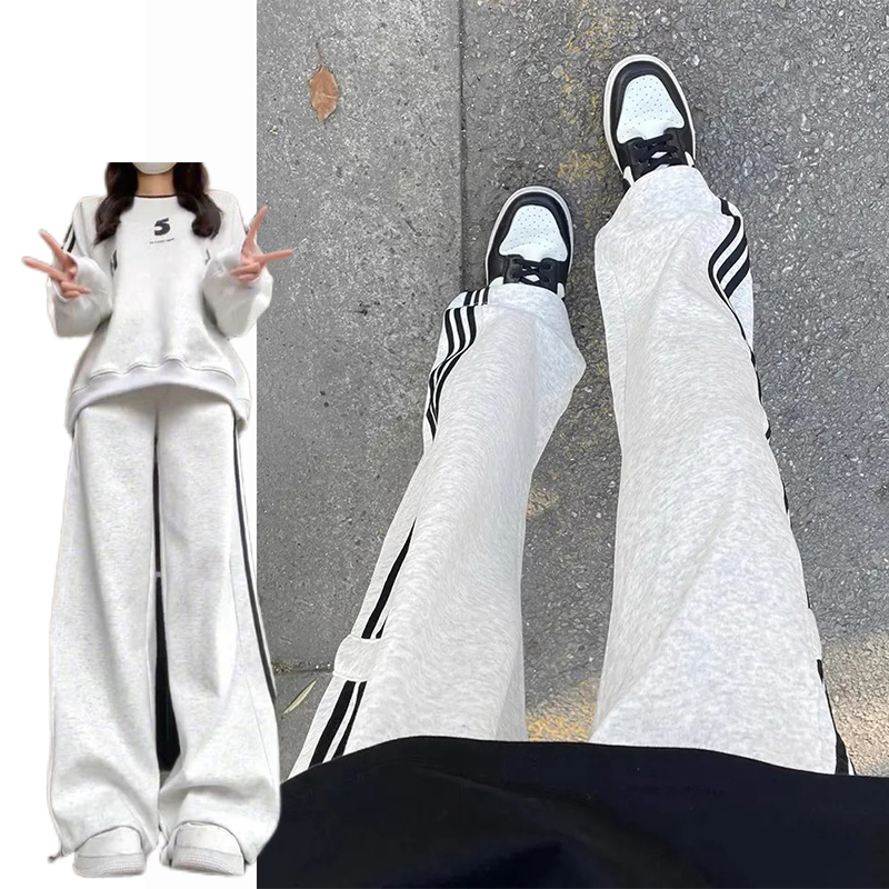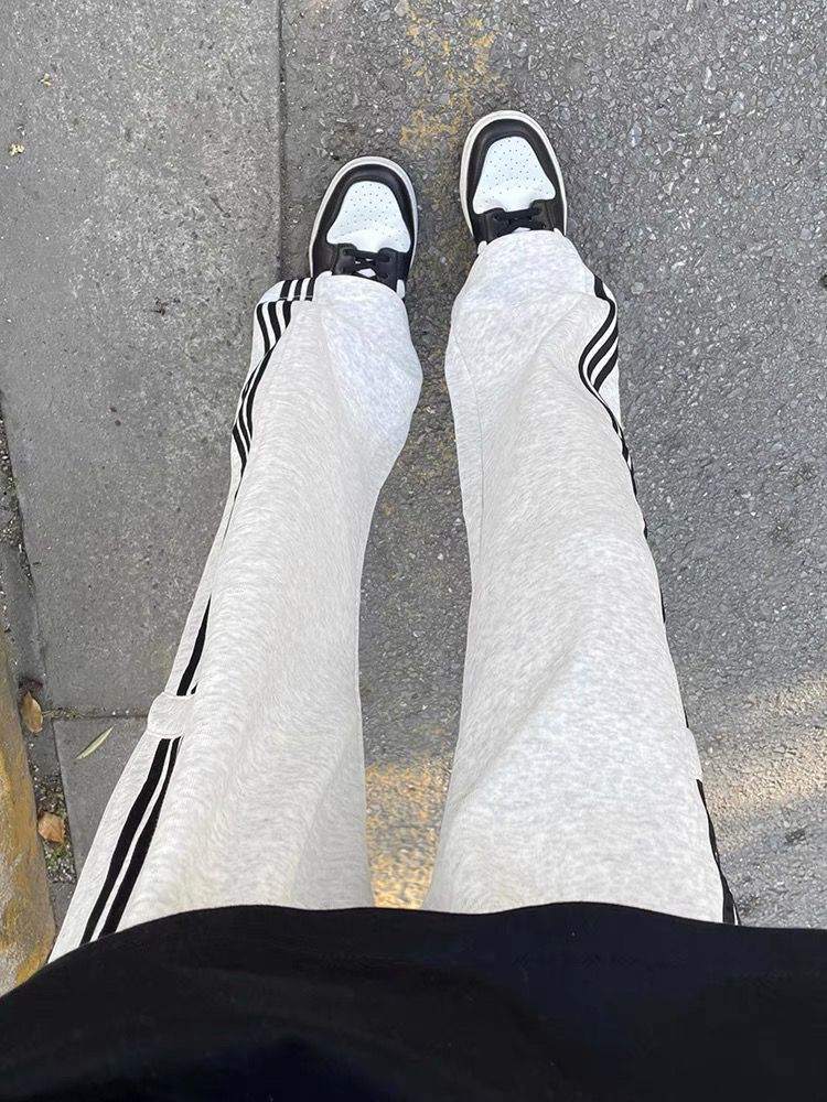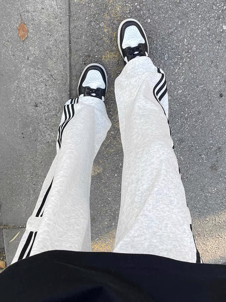 美式复古三条杠撞色休闲裤子美式复古新款宽松显瘦直筒运动裤夏季