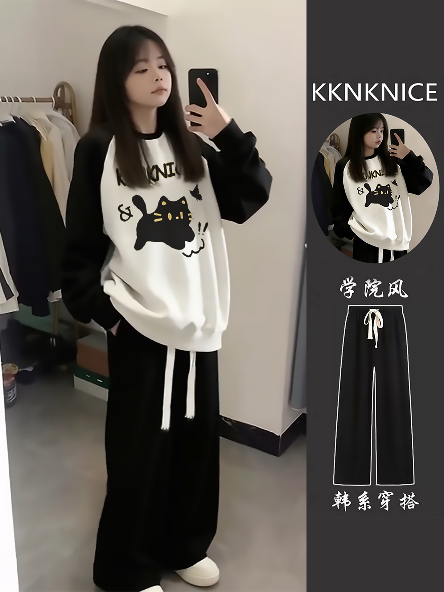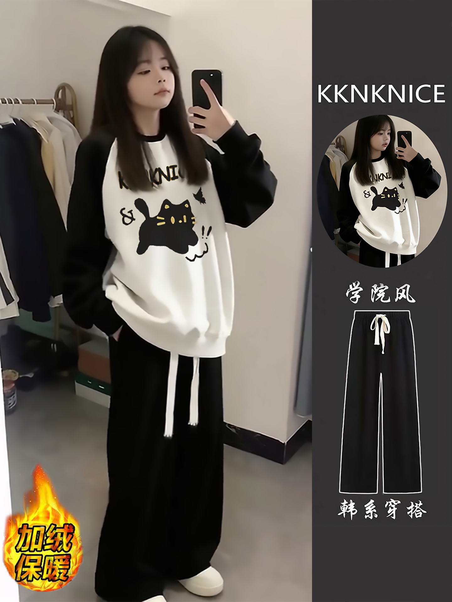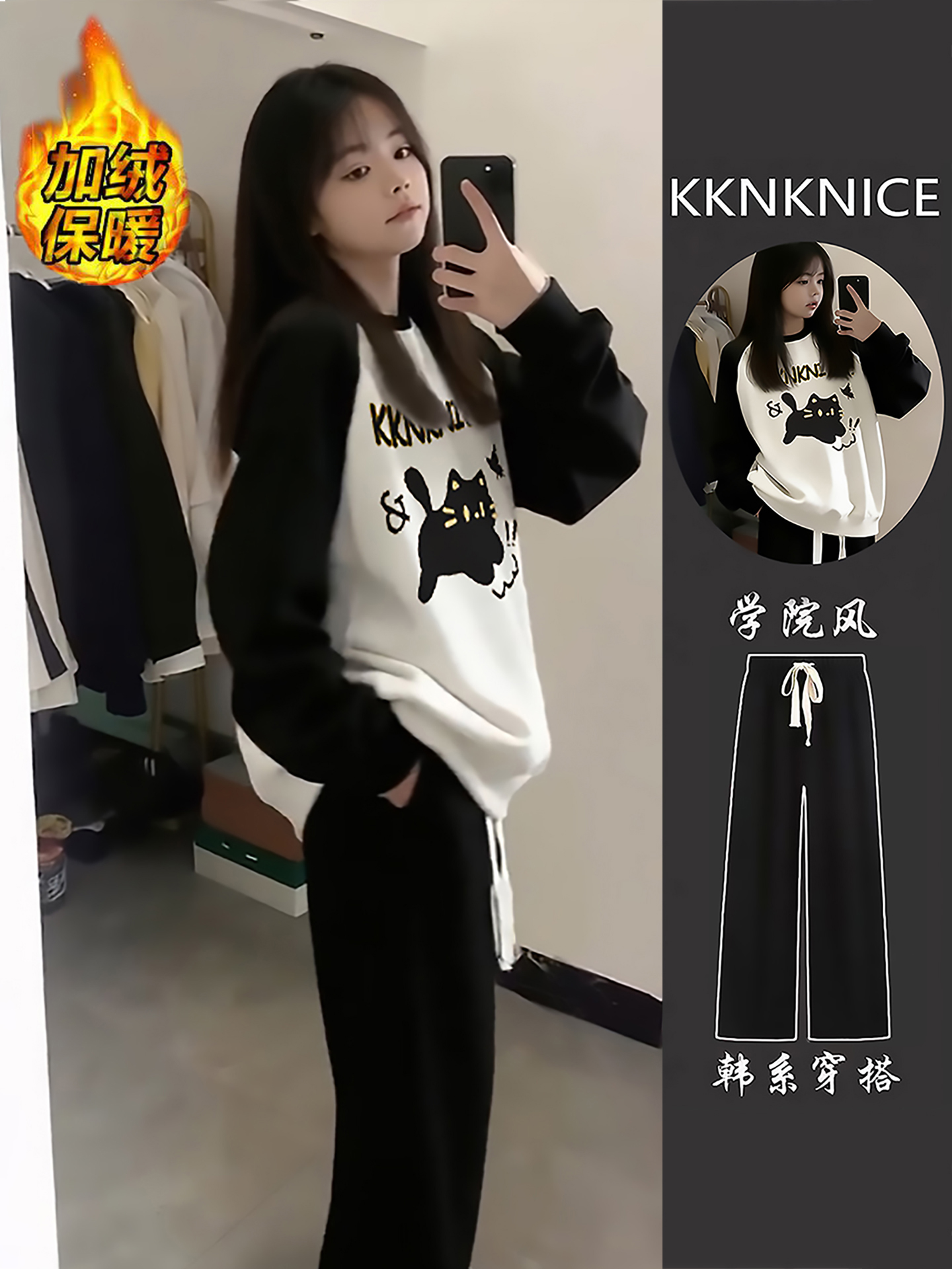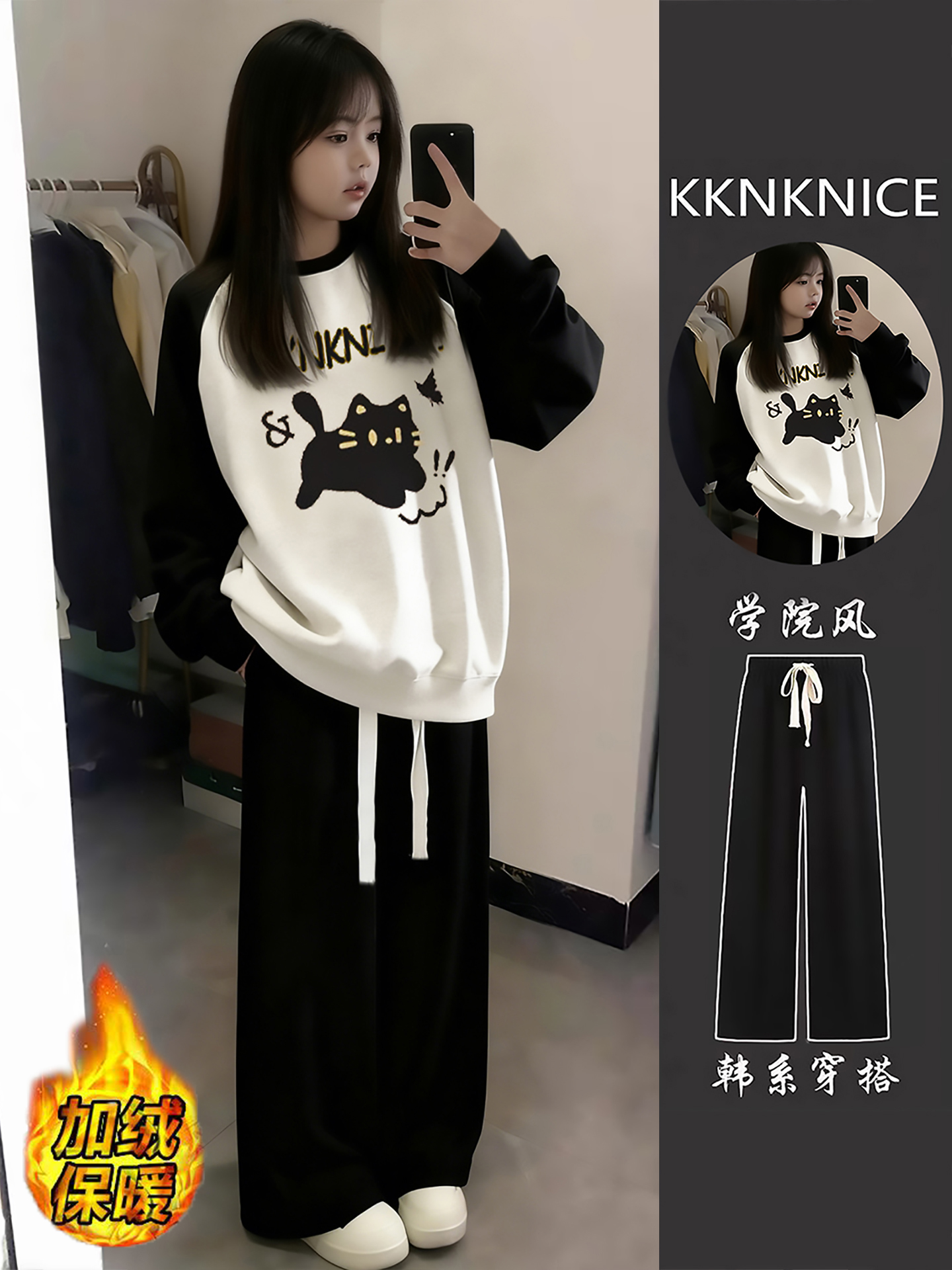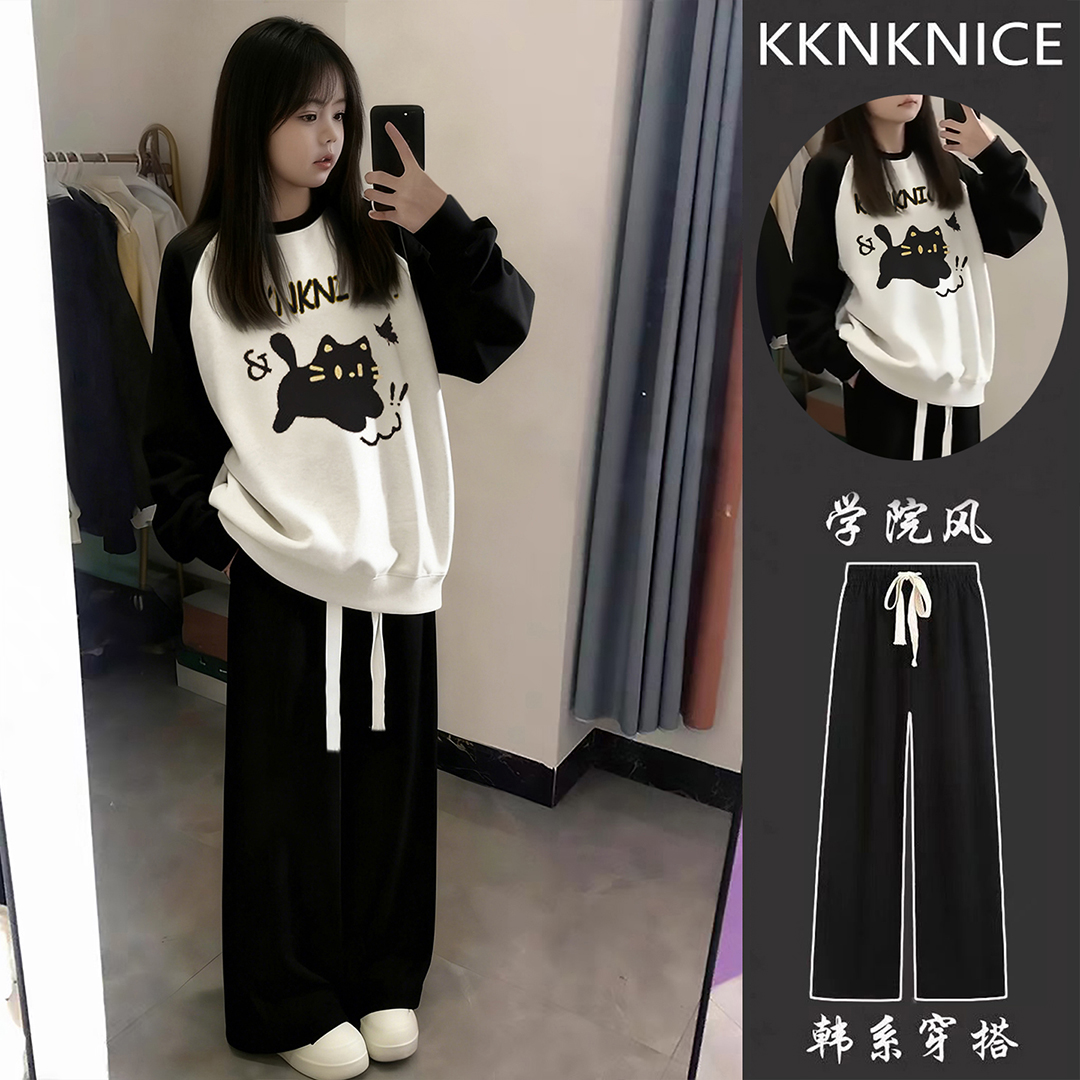 女生运动服套装圆领加绒卫衣女初中生外套女2025新款爆款秋冬裤子