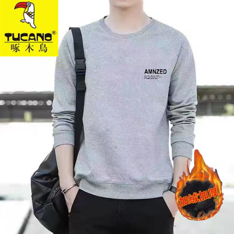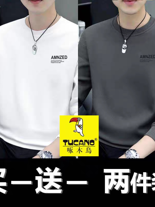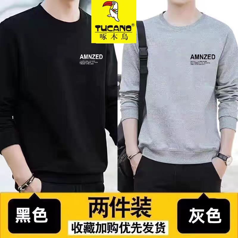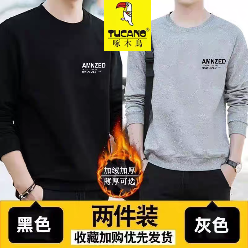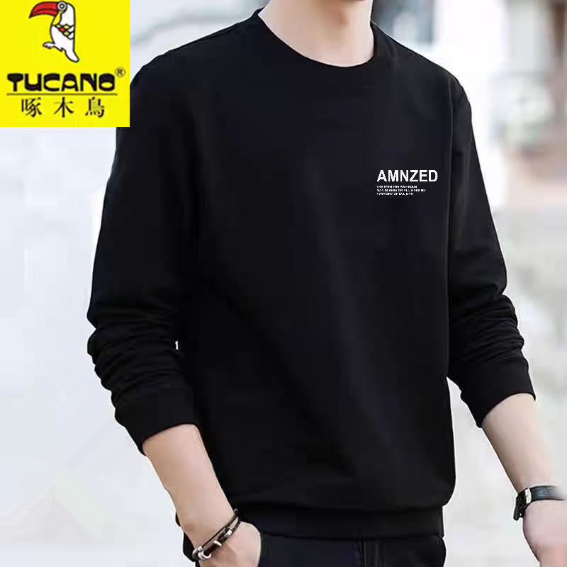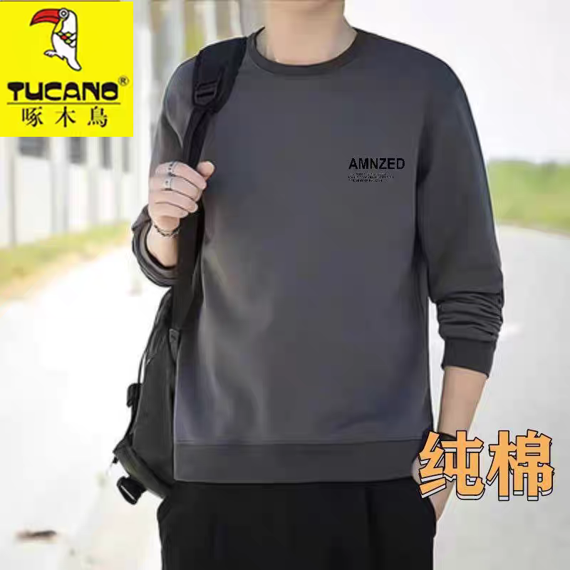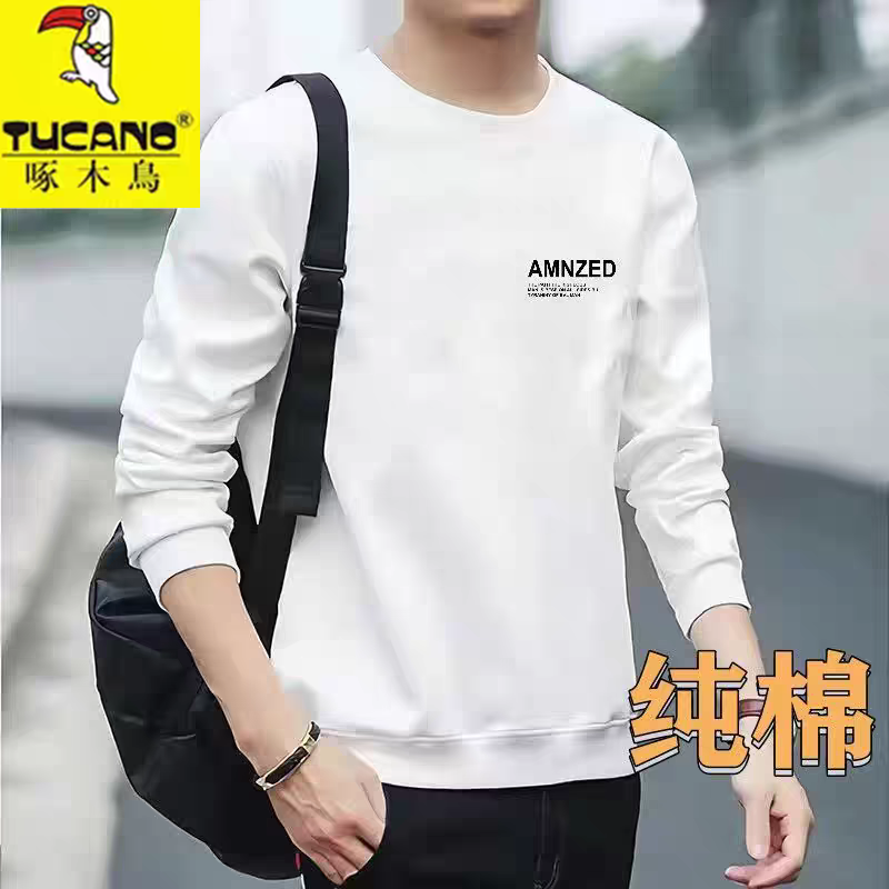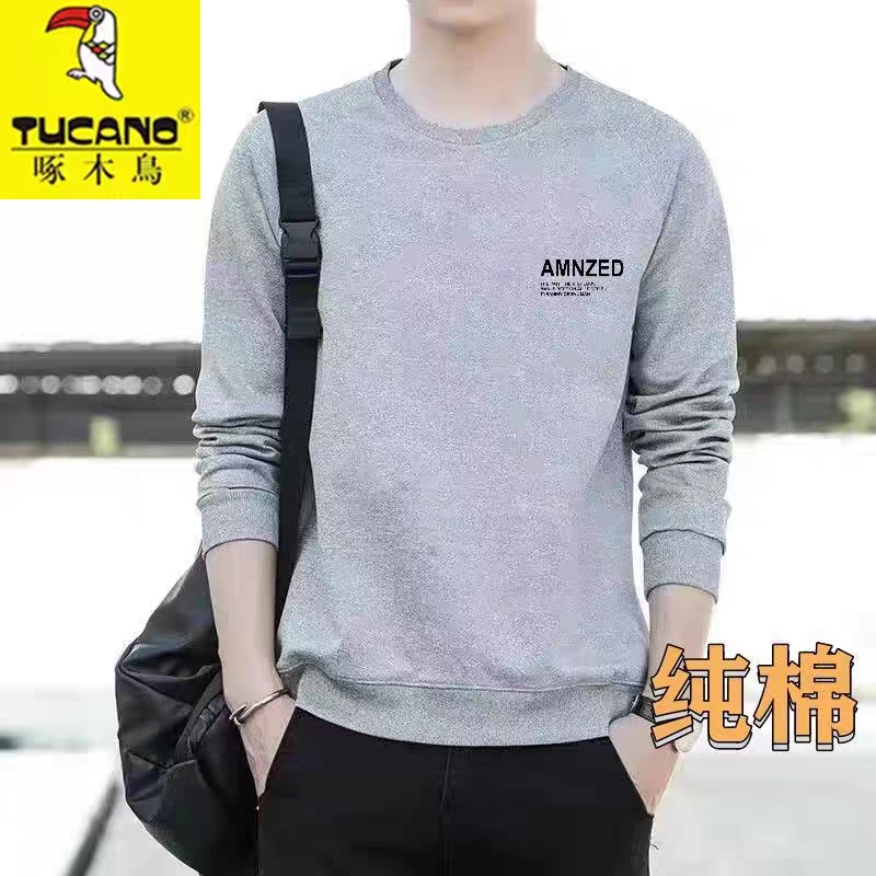啄木鸟纯棉卫衣男新款秋冬季圆领宽松百搭长袖男士T恤打底衫潮