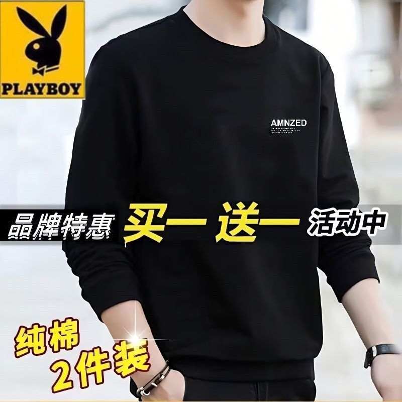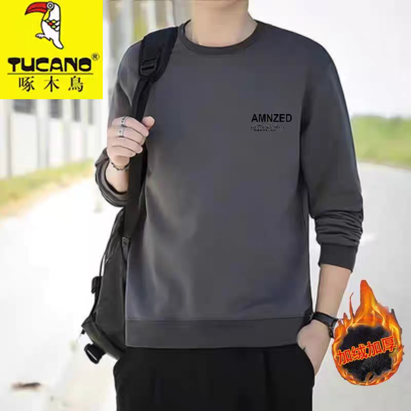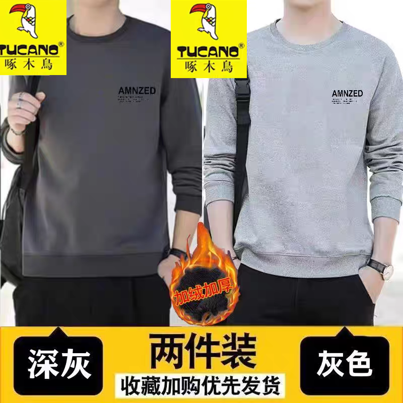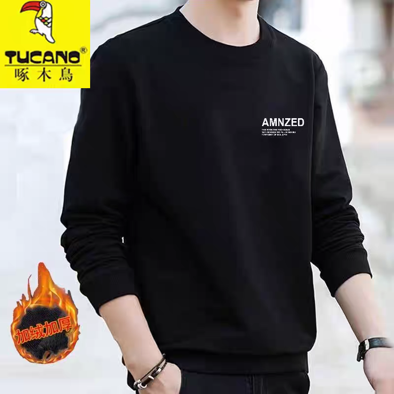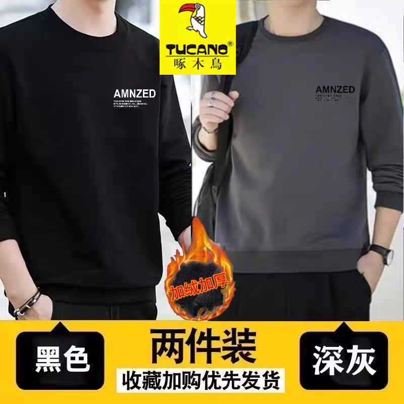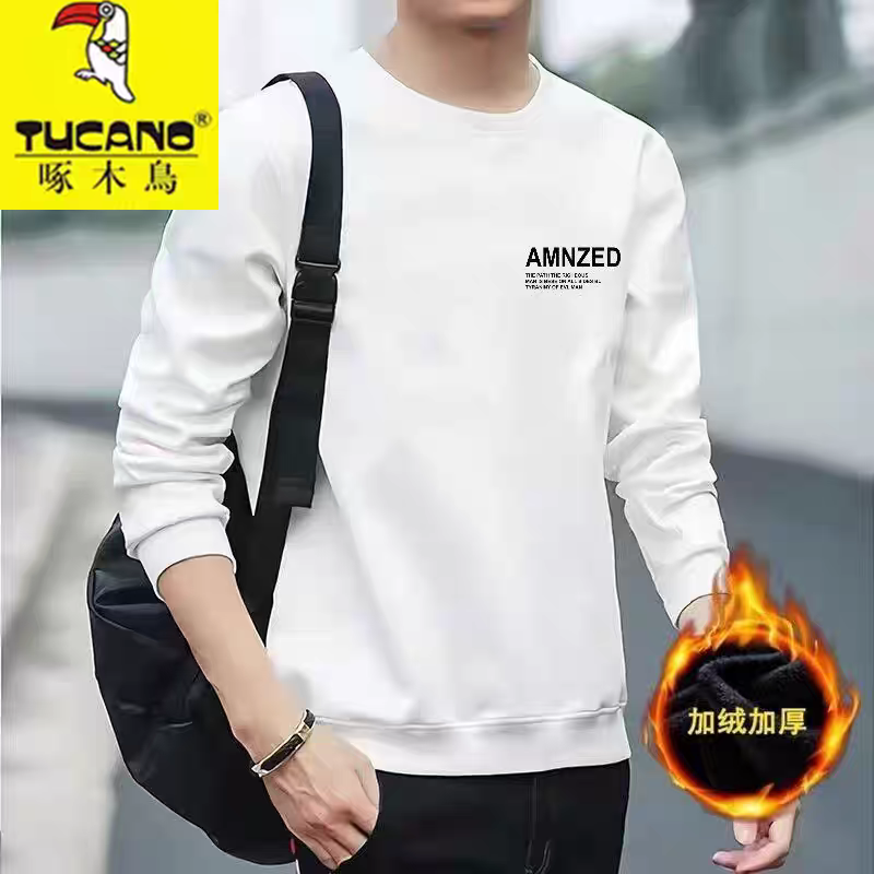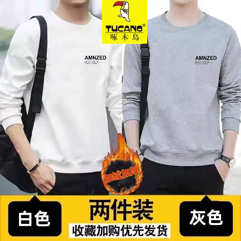 啄木鸟纯棉卫衣男新款秋冬季圆领宽松百搭长袖男士T恤打底衫潮